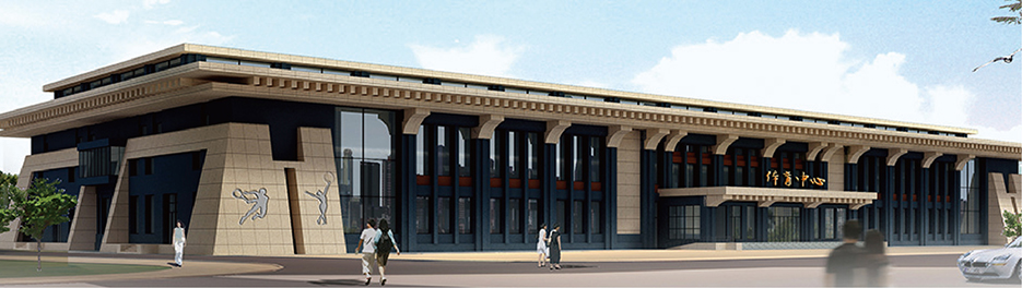 內(nèi)設(shè)標(biāo)準(zhǔn)羽毛球、乒乓球、網(wǎng)球場地, 外立面設(shè)計(jì)采用中式元素,外觀新穎獨(dú)特,是集健身娛樂為一體的現(xiàn)代化體育建筑。